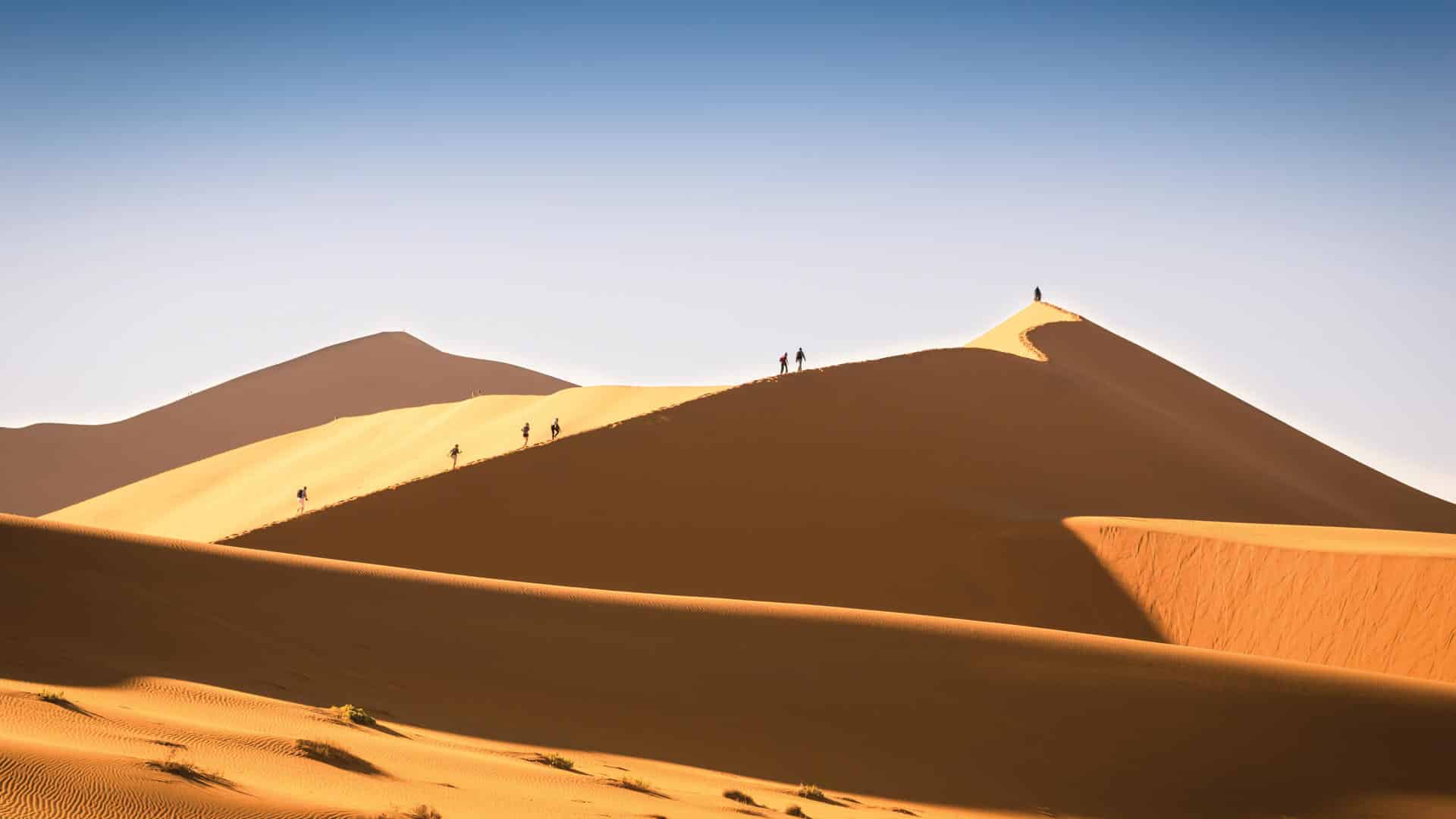 Il modo migliore per vivere un’esperienza davvero autentica nel leggendario deserto del Namib è prendere parte ad una spedizione con veicoli fuoristrada, meglio ancora se alla guida di uno di essi. I campi sono allestiti tra le dune e sulle spiagge in riva all’oceano. Alcuni tratti possono essere piuttoto impegnativi e richiedere esperienza pregressa di guida sulla sabbia. Si può scegliere tra itinerari che da Lüderitz arrivano a Walwis Bay e altri che percorrono la Skeleton Coast fino al confine dell’Angola. Magari non sarà questo il vostro primo viaggio in Namibia. Ma è probabile che sarà, quando sarà, il vostro miglior viaggio in Namibia di sempre.