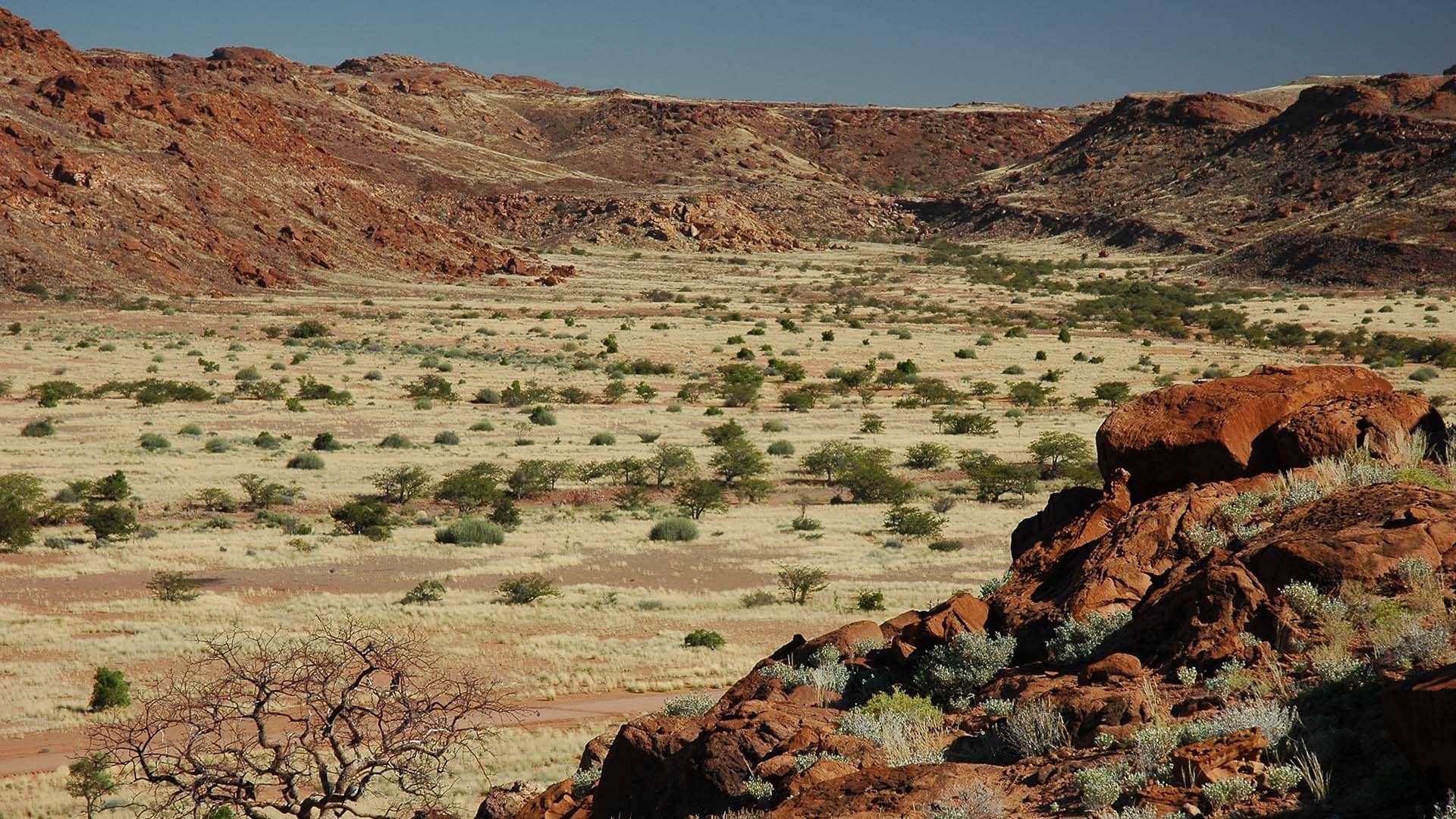 Insieme a quelli del Sossusvlei, quelli del Damaraland sono i più spettacolari della Namibia. Questo deserto di roccia, attraversato da fiumi fossili e ricoperto da una savana di acacie e di mopane, è la terra degli elusivi elefanti del deserto. Ma vi si trovano anche mandrie di orici, zebre, giraffe, ghepardi, occasionalmente rinoceronti neri e, sempre meno di rado, leoni. Nella zona di Twyvelfontein si possono ammirare le millenarie pitture rupestri dei boscimani di un tempo antico.