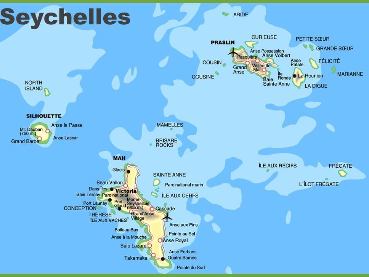 La stragrande maggioranza delle isole dell’arcipelago sono sostanzialmente degli atolli, anche se talvolta di dimensioni ragguardevoli. Le 3 isole principali sono quelle di Mahé, Praslin e La Digue. Tutte ben collegate tra loro, e facilmente combinabili in un soggiorno più itinerante e meno stanziale.