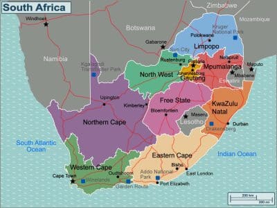 Di seguito una panoramica delle principali macro-aree del Sudafrica, non necessariamente corrispondenti alla suddivisione politico-amministrativa ufficiale.