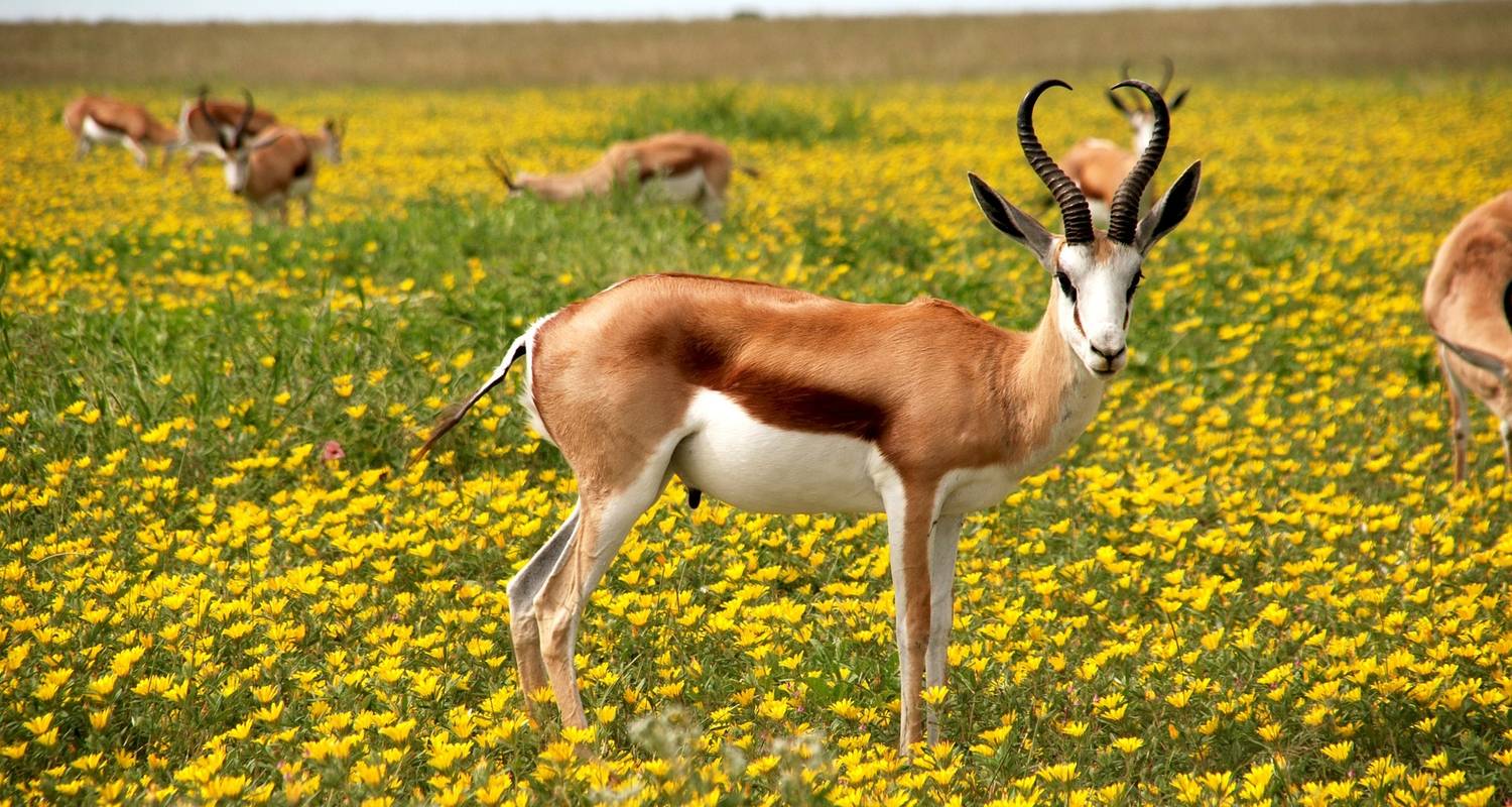 Partenza di primo mattino verso la West Coast, dove la meta è il West Coast National Park e la sua favolosa laguna di Langebaan. Da non mancare, nei mesi della fioritura di agosto e settembre, la visita alla sezione di Postberg, dove si trova anche una discreta quantità di fauna (gnu, struzzi, kudu, eland, springbok, bontebok, otocioni, ecc.). Nel parco ci sono di capanni per l’osservazione degli uccelli (fenicotteri, albatross, sule del Capo, black oystercatcher) di fronte alla laguna. Le spiaggette sabbiose di Kraalbaai sono semplicemente idilliache. Il posto migliore per un braai (bbq) sulla spiaggia è però a Tsaarbank, a pochi km di distanza, dove l’energia sprigionata dall’Atlantico è quanto di più stridente con le placide acque della laguna a breve distanza.